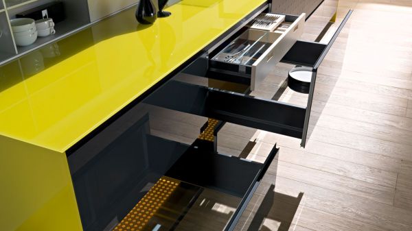 Il fusto Invitrum è costituito da un unico fianco in vetro dello spessore di 10mm su cui vengono fissati dei supporti in pvc per il montaggio della ferramenta e che poggia su un telaio in alluminio dotato di piedi regolabili. Queste caratteristiche rendono Invitrum la prima base al mondo 100% riciclabile, che gioca un ruolo ecologico ed ecocompatibile in quanto si hanno zero emissioni tossiche nell'ambiente, si riduce la quantità di materiale utilizzato per la struttura ed è facilmente disassemblabile grazie all'uso di giunzioni mecaniche, anzichè colle, per l'unione degli elementi.